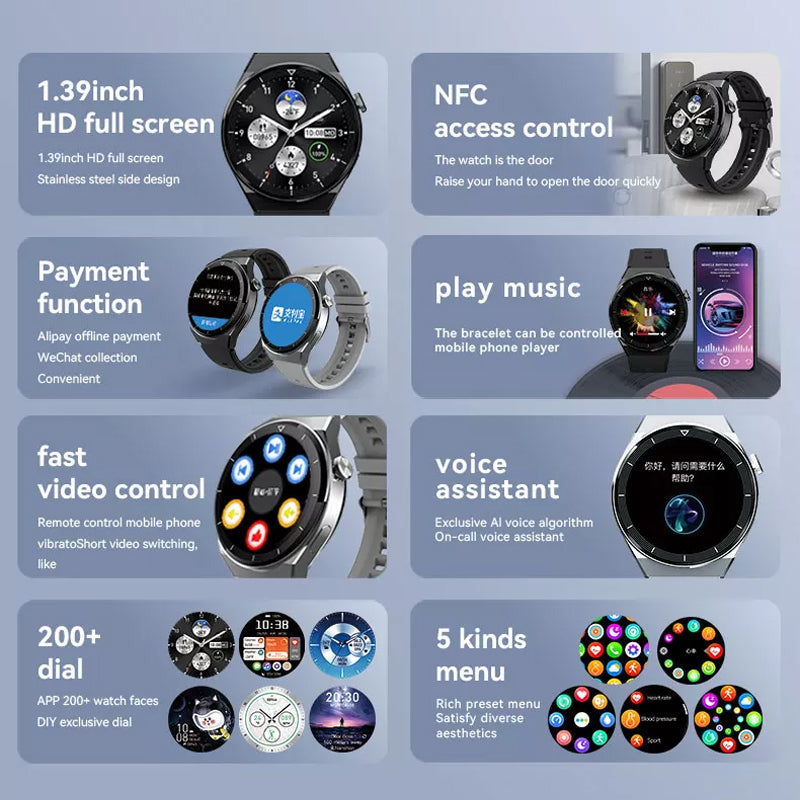 GT3 Smartwatch 1.5 " HD Full Screen Smart Fitness Bracelet Heart Rate Monitor BT Call Wristwatch GT3 Max Smart Watch For Huawei