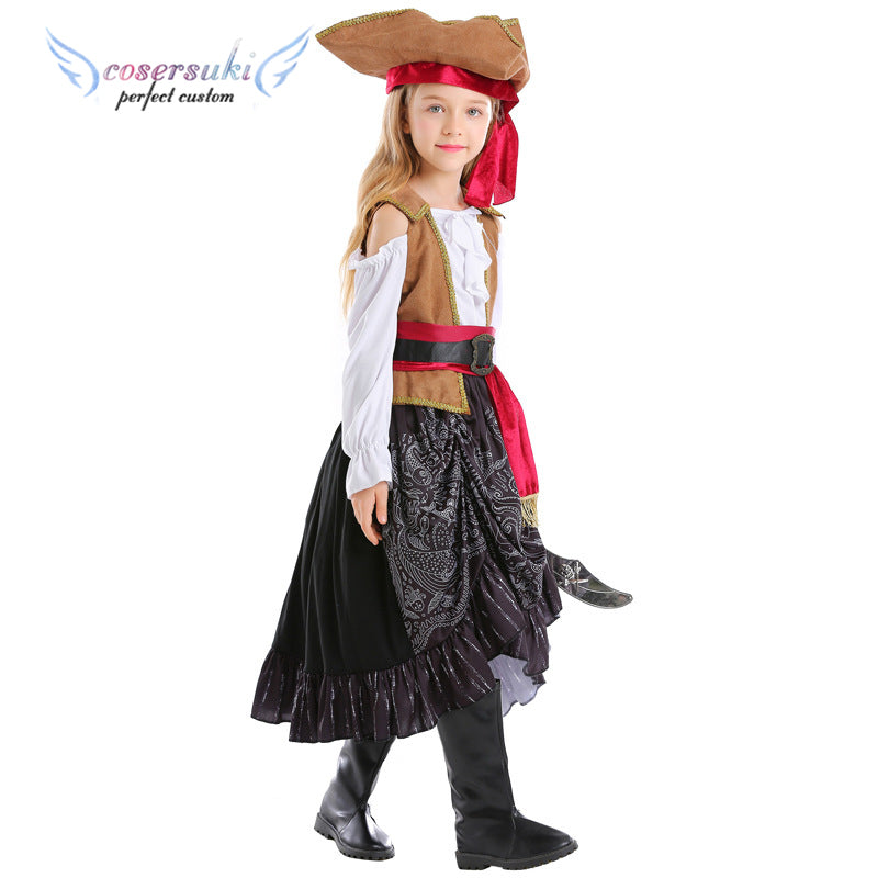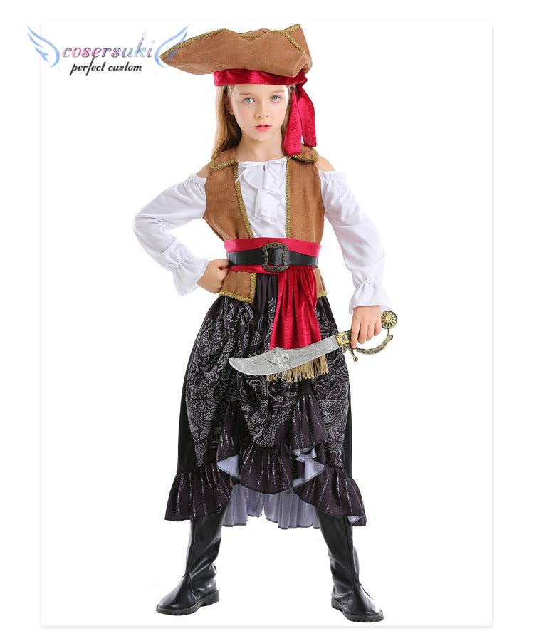 Halloween kids cosplay Viking Pirate captain fancy dress costume two-piece dress stage performance clothing