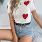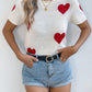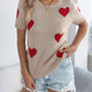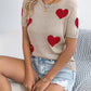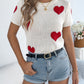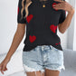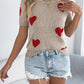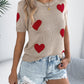 Heart Round Neck Short Sleeve Knit Top