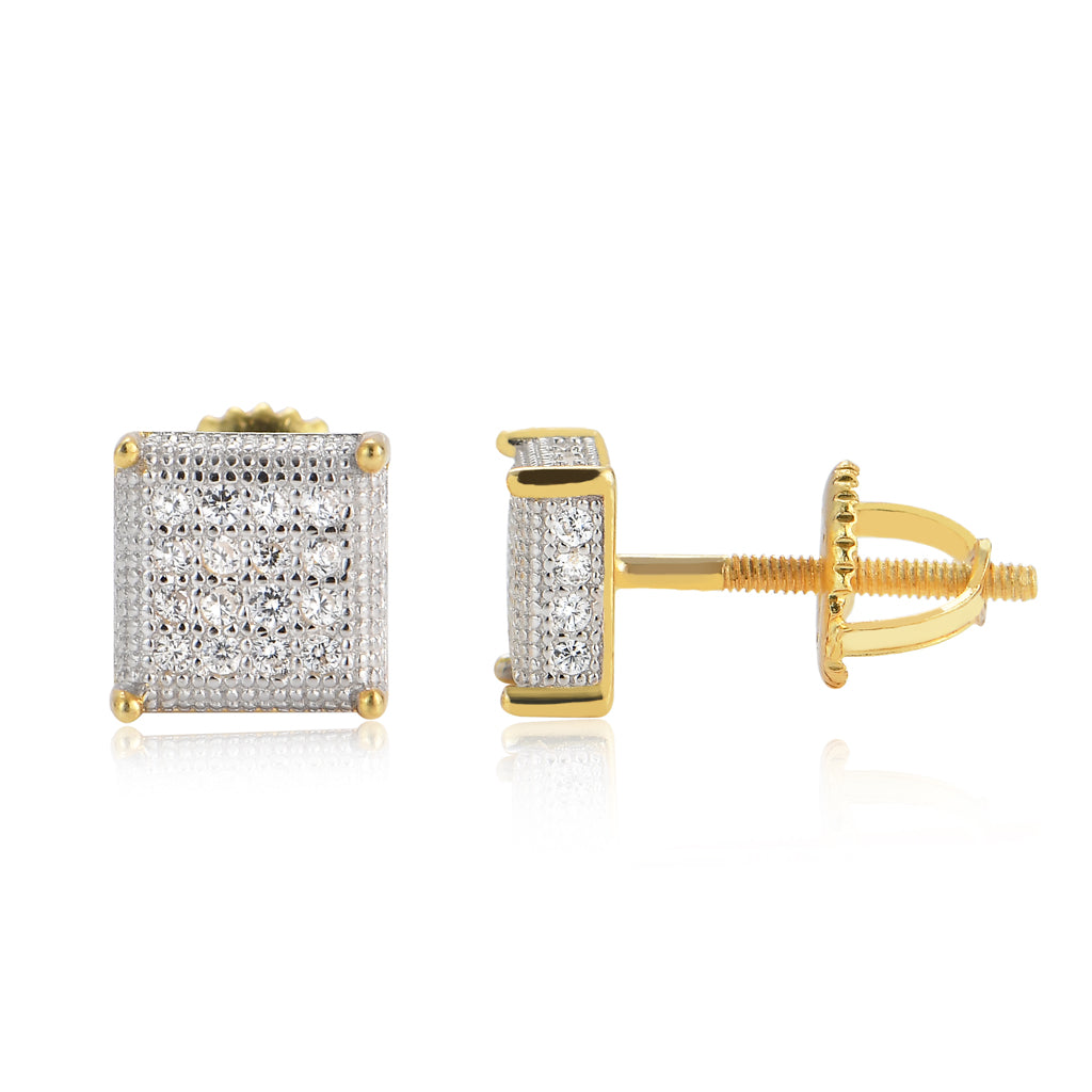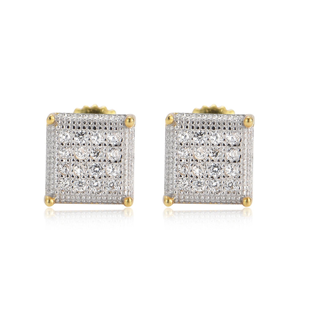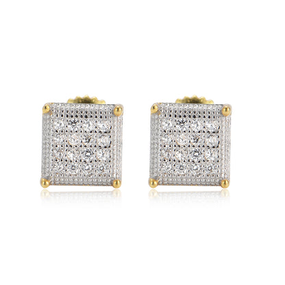 High Quality 925 Sterling Silver Hip Hop Stud Earring 5A Cubic Zirconia Stone Iced Out Diamond Men's and Women Square Earrings