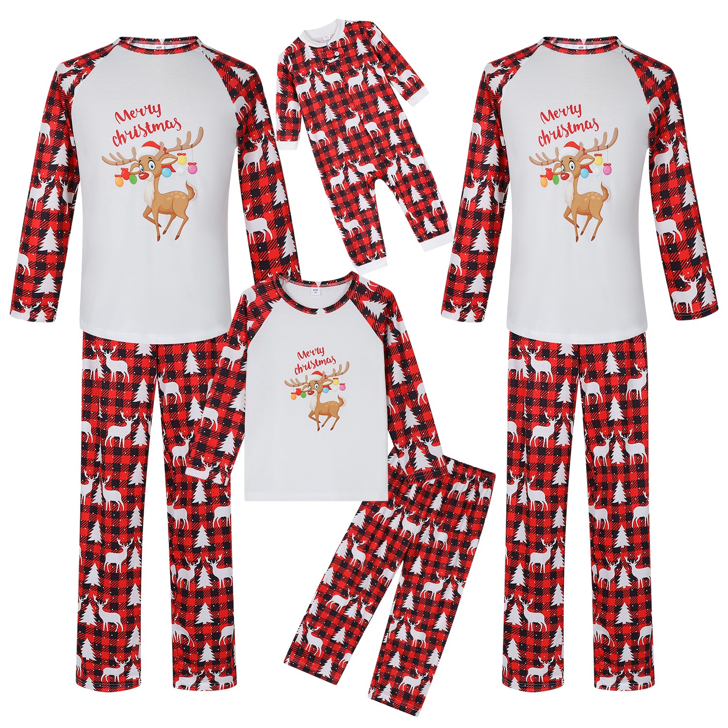 Hot Sale Elk Printed Home Clothes Parent-Child Set Family Matching Outfits Long Sleeve Cotton Christmas Family Pajama Set