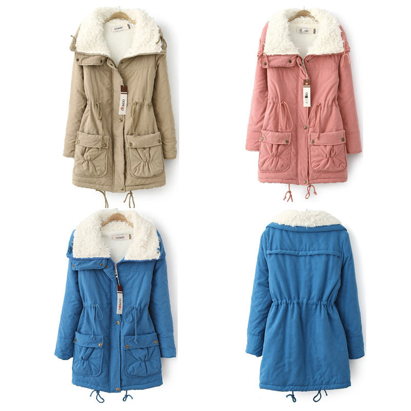 Hot sale fashion winter thick cargo coat for women casual plus size mid-length jackets warm lamb velvet cotton coats women