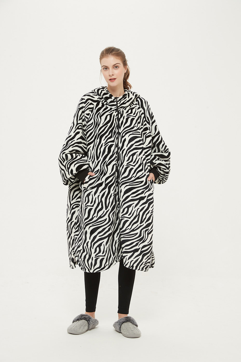 Hot sell Flannel Sherpa Sweatshirt Oversized Giant Pocket Design Wearable Hooded Zipper Blanket Hoodie