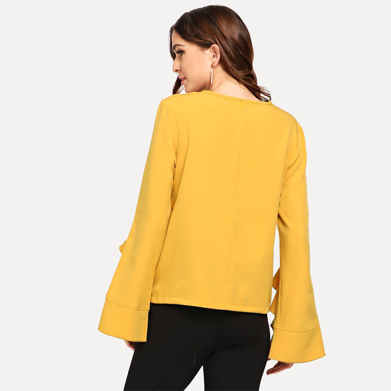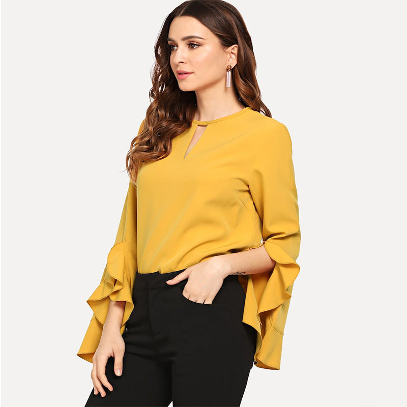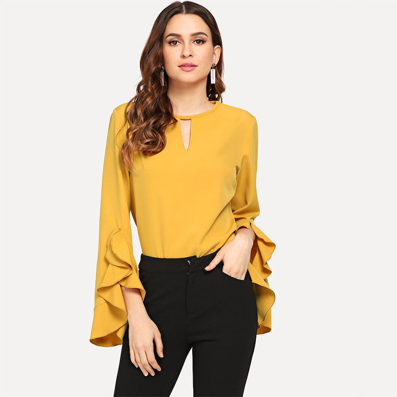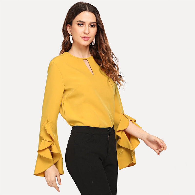 Hot Selling Woman Custom Blouses And Tops 2021 blusa mujer Chiffon Ruffle Solid Color Shirts And Blouses For Girl