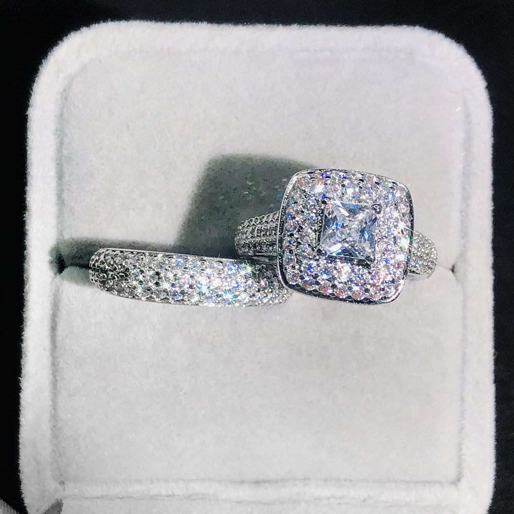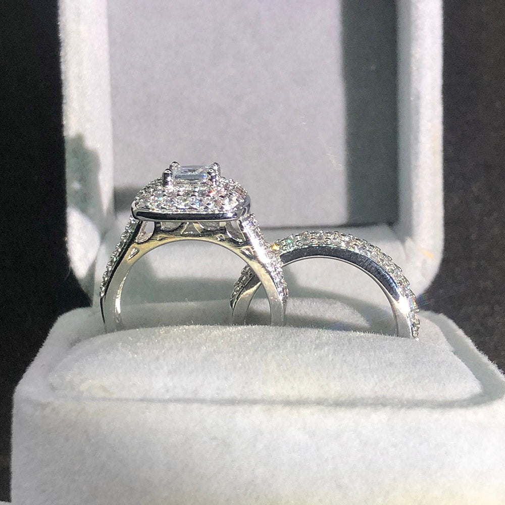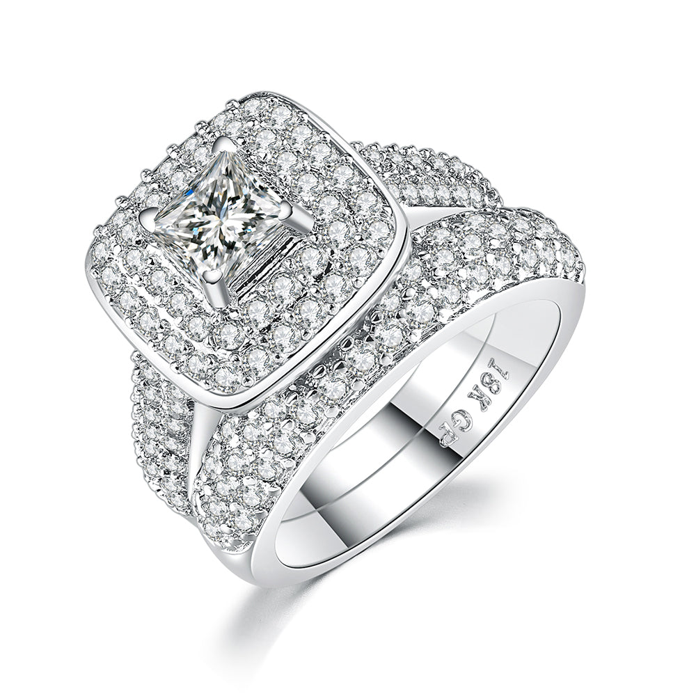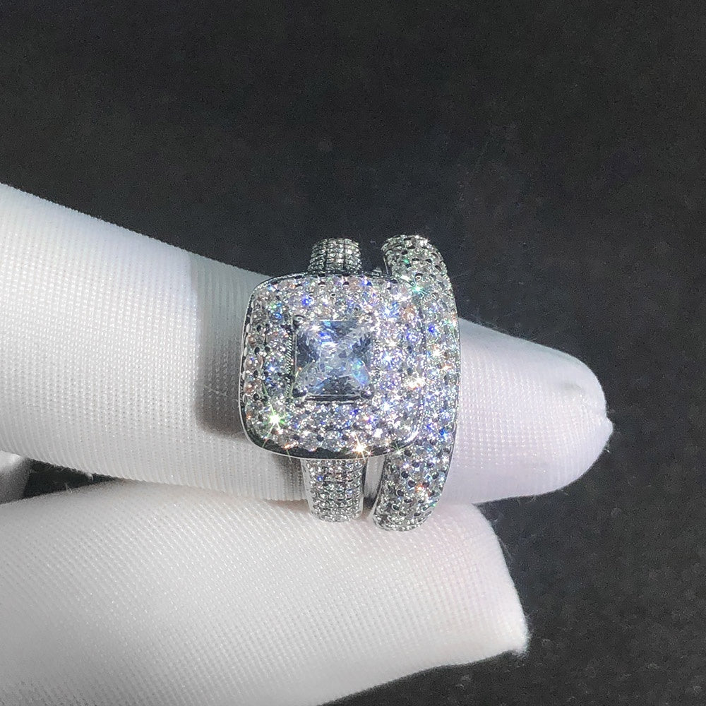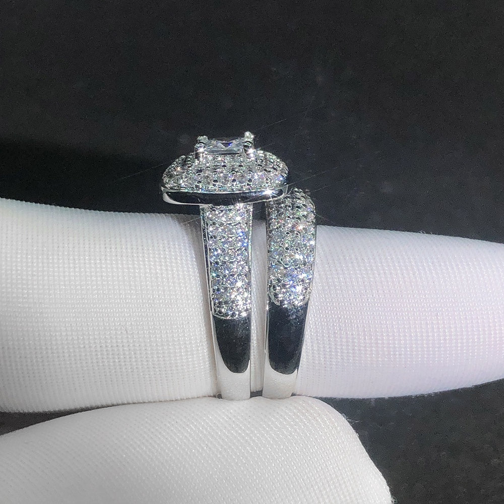 Hot Selling Women's Gorgeous Princess Cut Cubic Zirconia Promise Engagement Bridal Wedding Ring Set