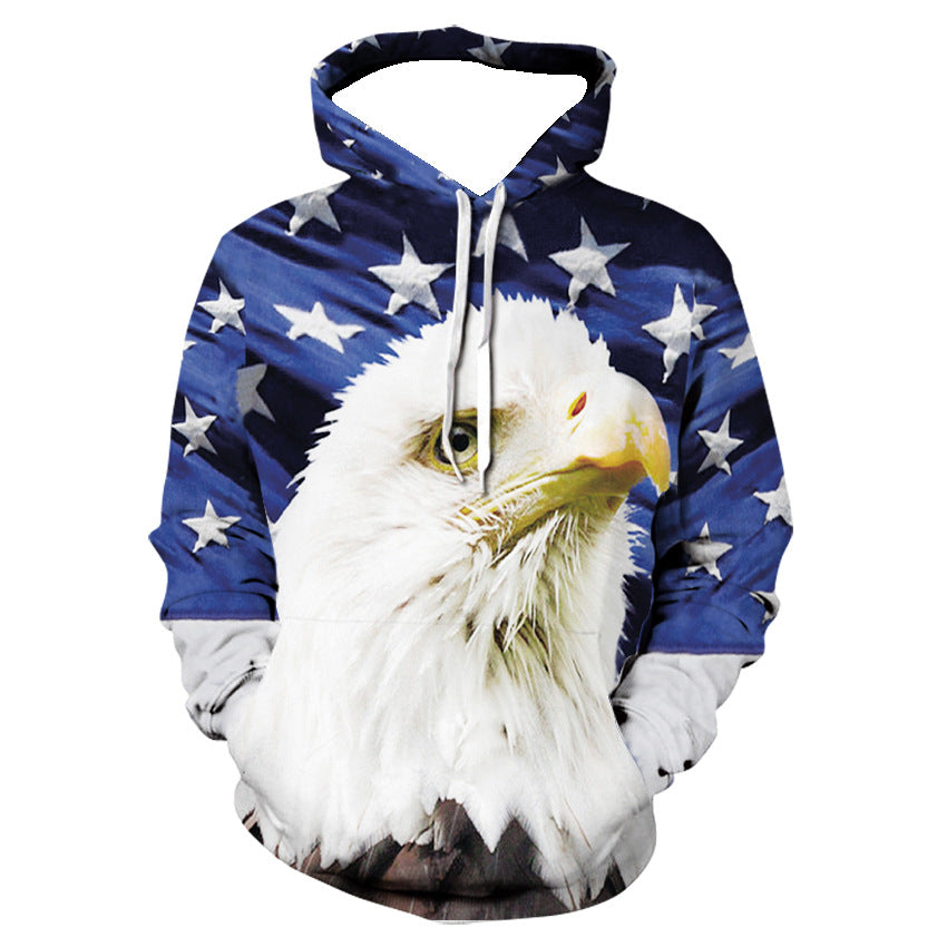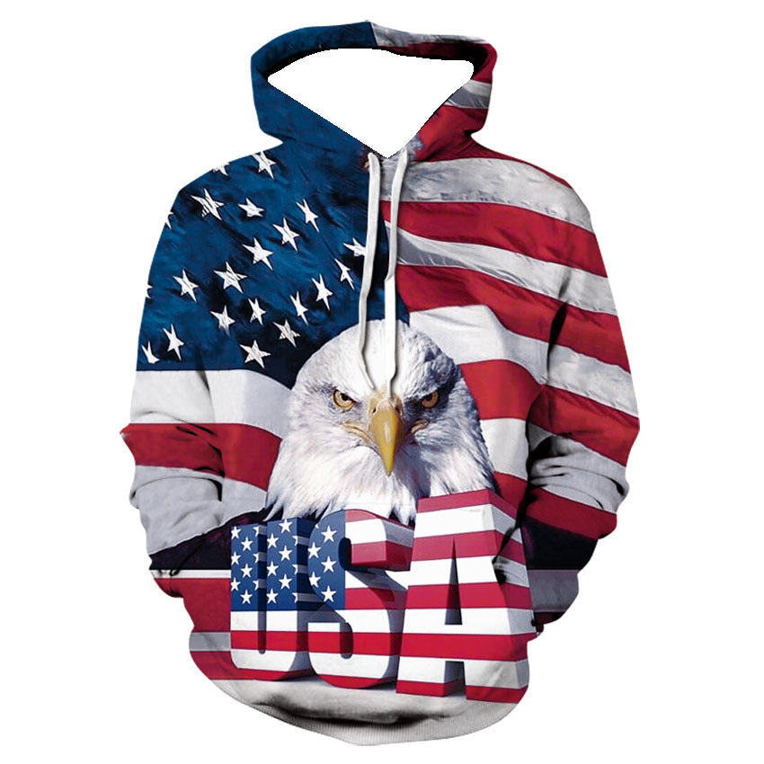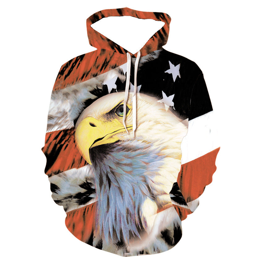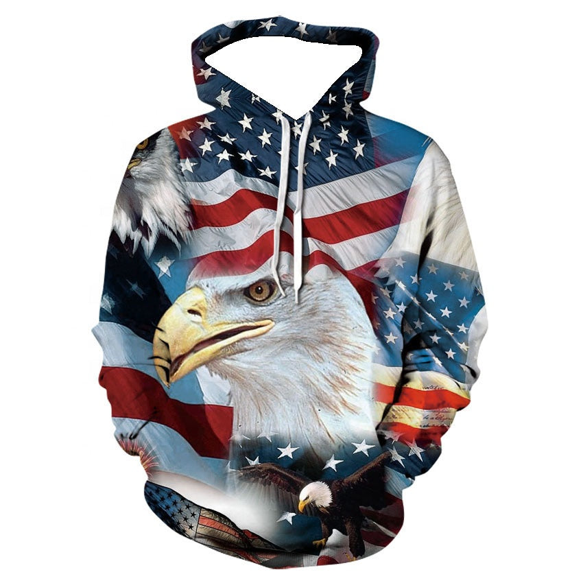 In Stock Round Neck Pullover 3d Printing American Flag Eagle Hoodie Sweater Plus Size Male Oversized Sublimation Men's Hoodies