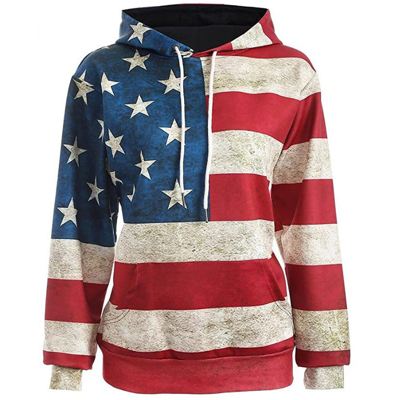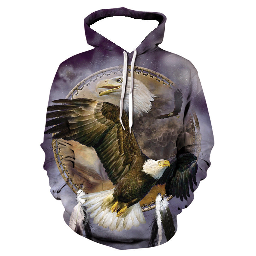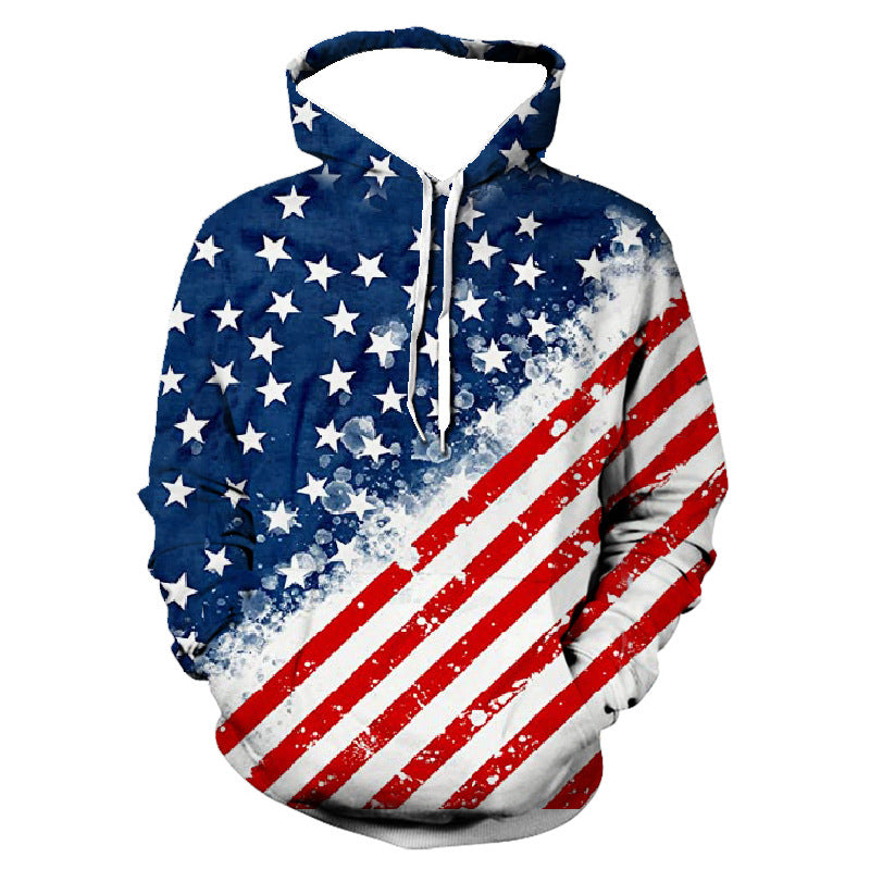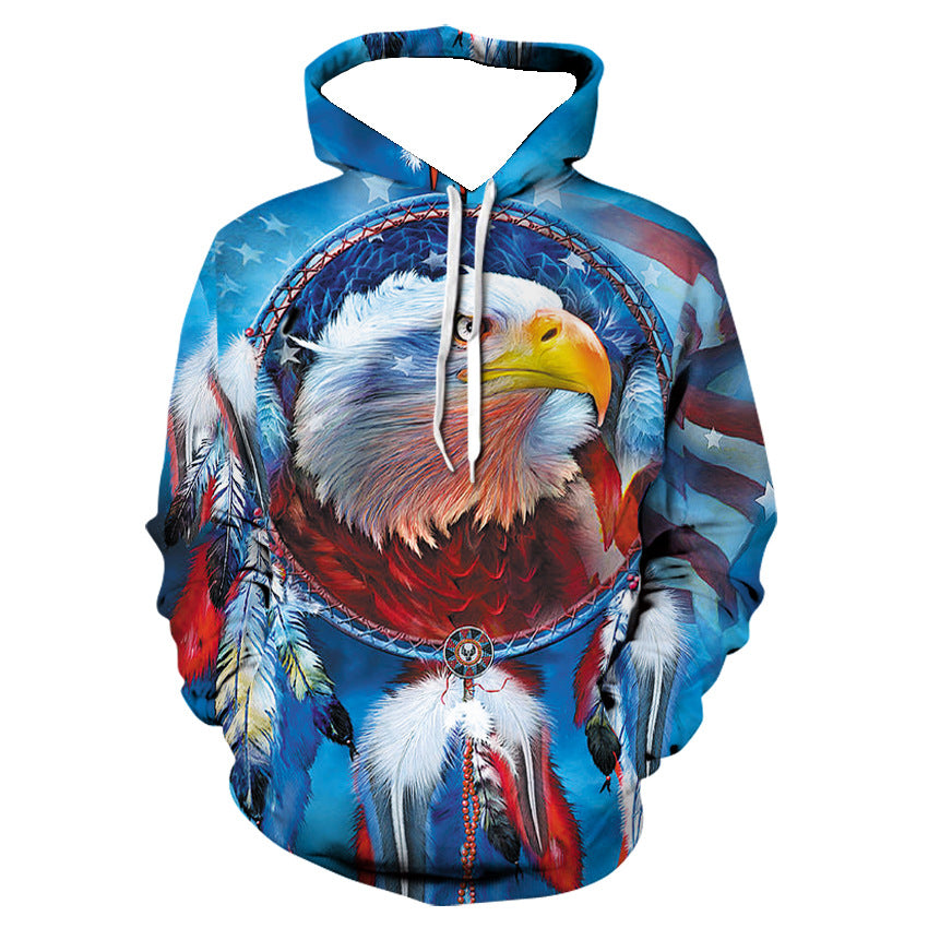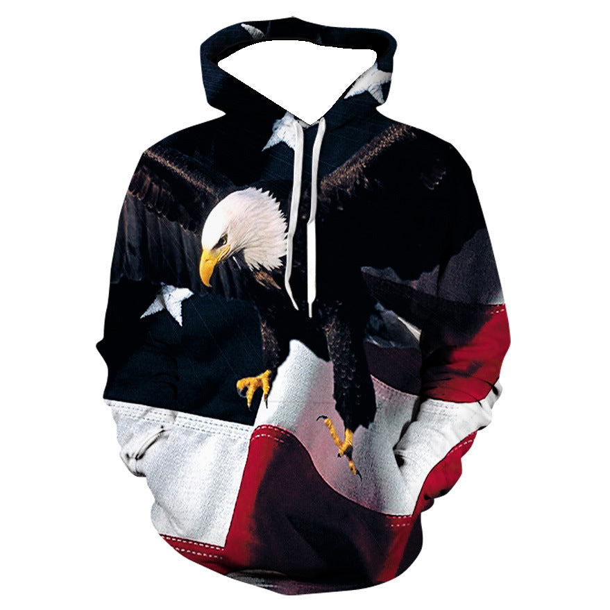 In Stock Round Neck Pullover 3d Printing American Flag Eagle Hoodie Sweater Plus Size Male Oversized Sublimation Men's Hoodies