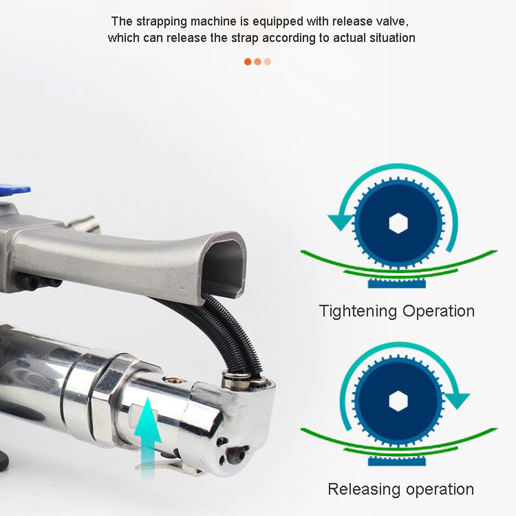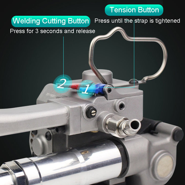 The Pneumatic Strapping Tool is able to finish the step of tightening and welding in one machine. It is driven by air instead of manual operation. Compare to the manual strapping tool, it dramatically improves the packing efficiency. Now it’s widely used in industries like brick, glass, paper, aluminum ingot, metal tube, etc.