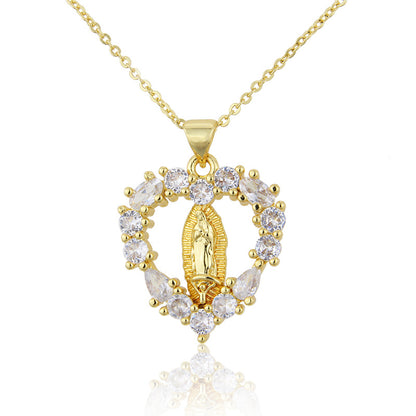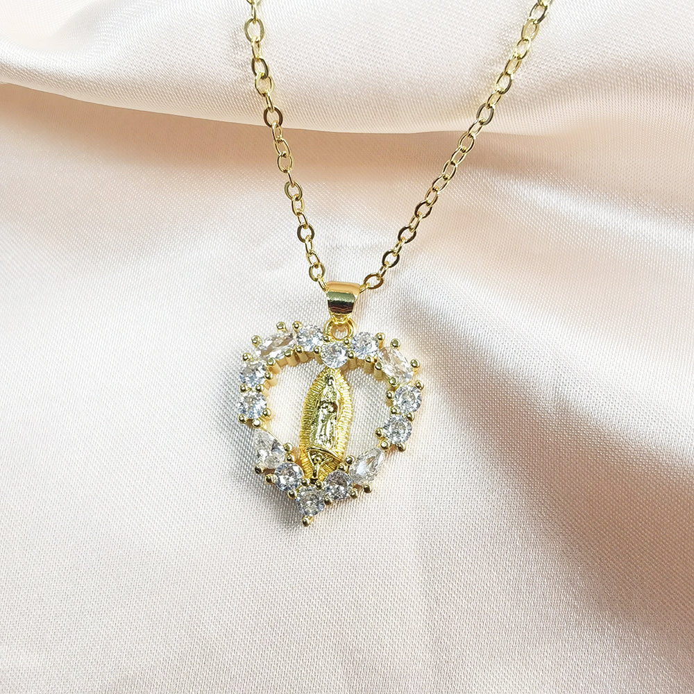 IVIAPRO Jewelry 18K Gold Plated Religious Necklace Heart Shape Virgin Mary Pendant Necklace