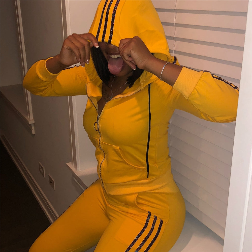 2019 Zipper Fly Ladies with Hood Hoodies Set Pullover Long Sleeve Women Hoodies