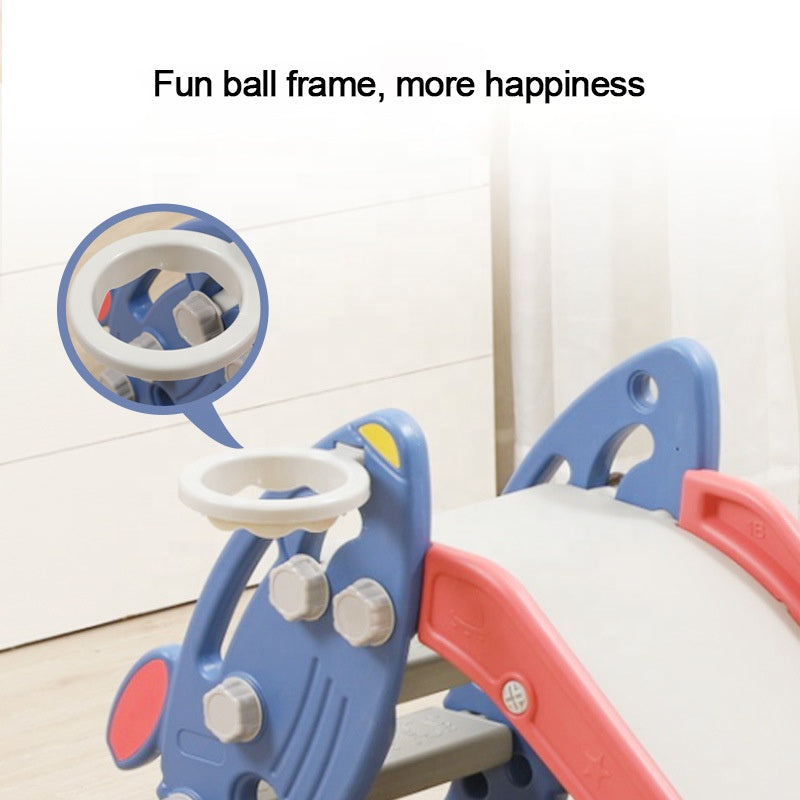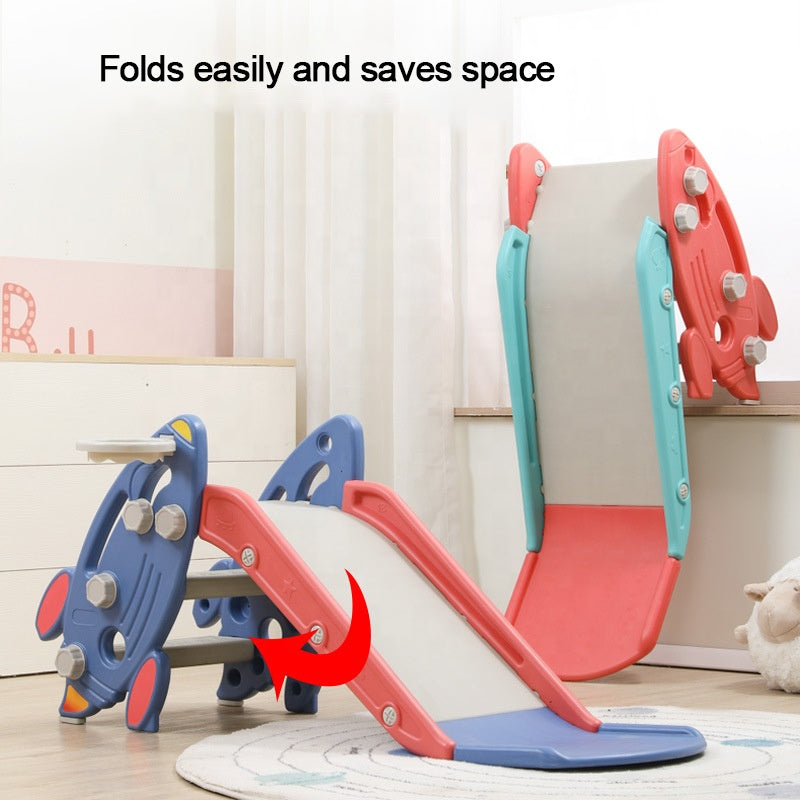 kids Playground Equipment Baby Toys Basketball Hoop Rocket Shape Mini Indoor Plastic Foldable Stair Slide