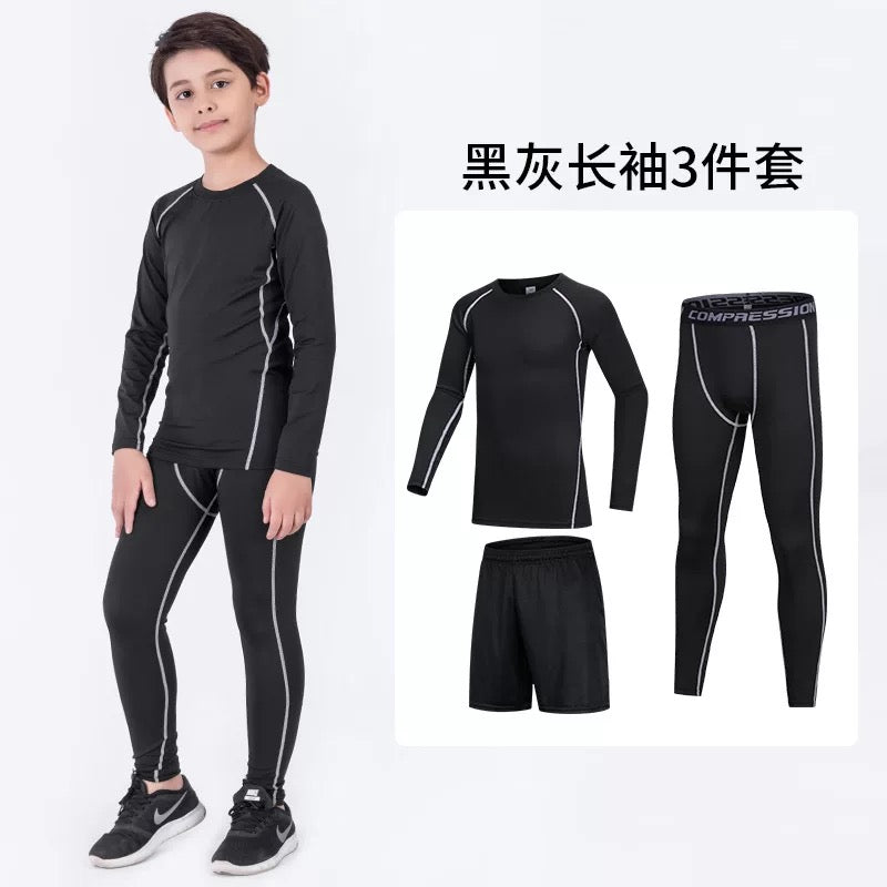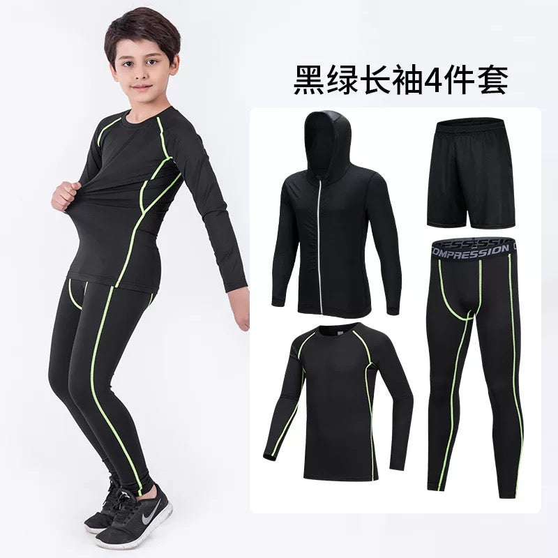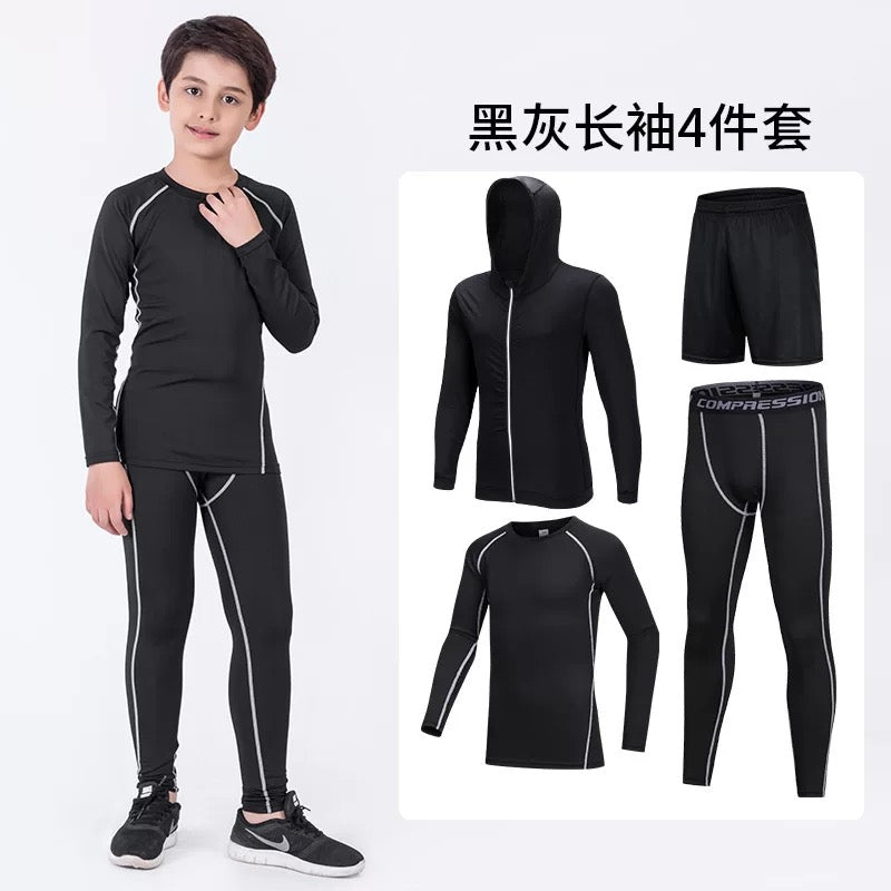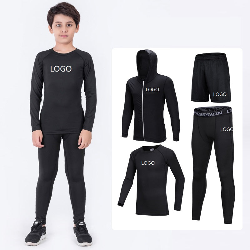 Kids Sweatsuits Quick Dry Polyester OEM Sportswear Workout 5PCS Tracksuit Running Training Compression Wear Fitness Clothing
