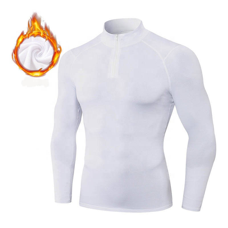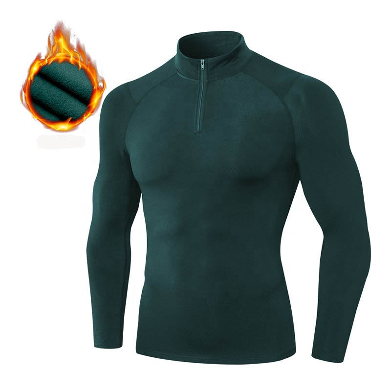 Long Sleeve Men's Brushed Sweatshirts Close Fit Stand Collar Gym Workout Tops Seamless Polyester Spandex Fleece Exercise Sweater