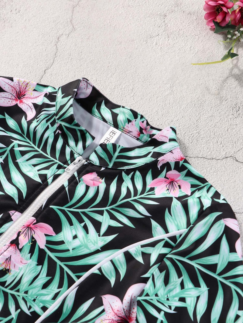 Swim tops features beautiful patterns printed, long sleeves, zipper at front, easy to put on or take off.