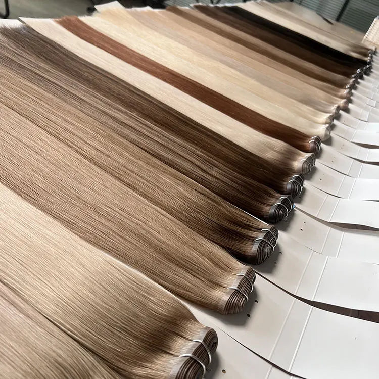 Luxurious Celebrity Choice Double Drawn Russian Slavic Cuticle Aligned Virgin Remy Machine Weft Hair Extensions