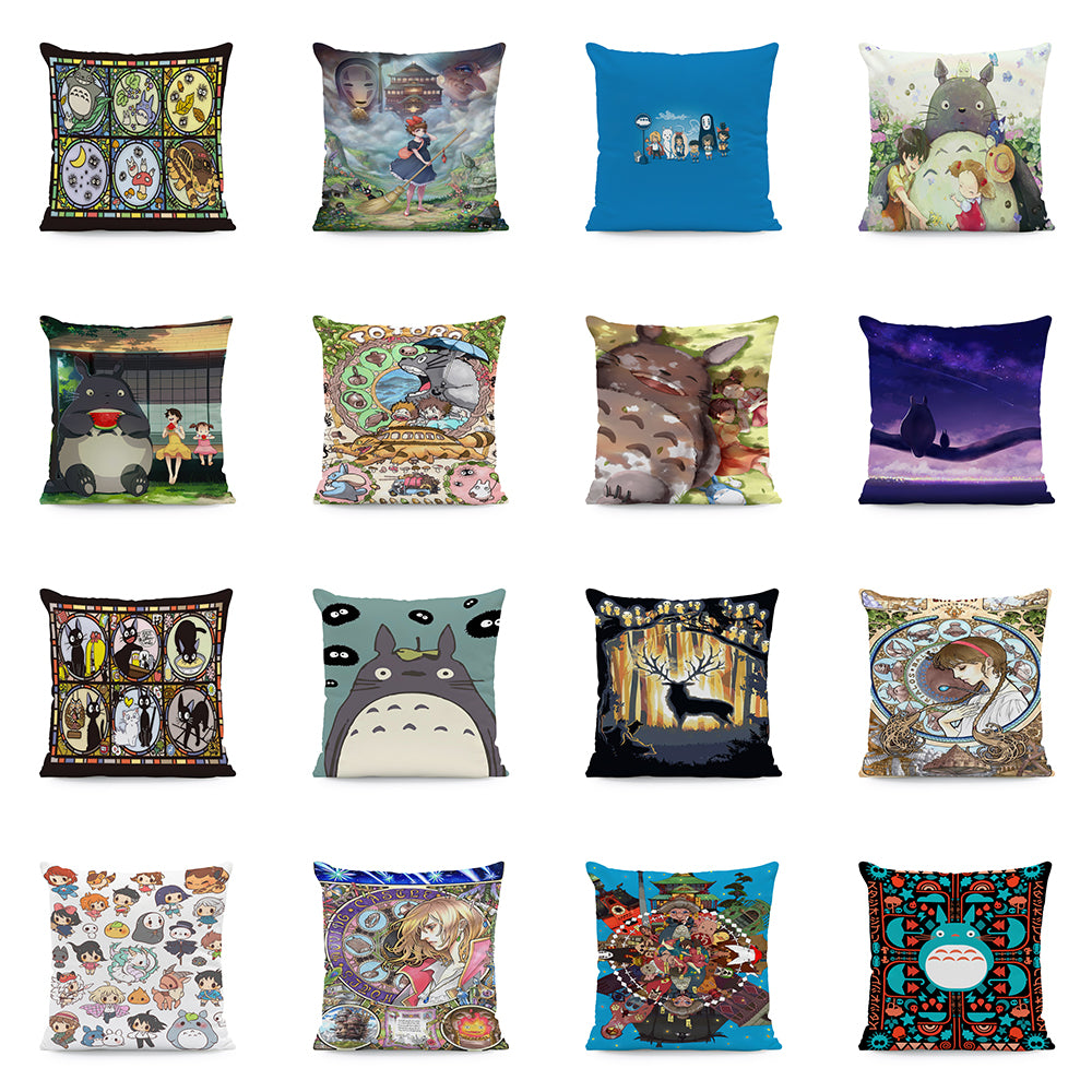 Luxury Trow Pillows Case Totoro Japanese Anime Blue And Blue 45 X 45Cm Sublimation Velvet Decorative Cushions Cover Sofa Kids