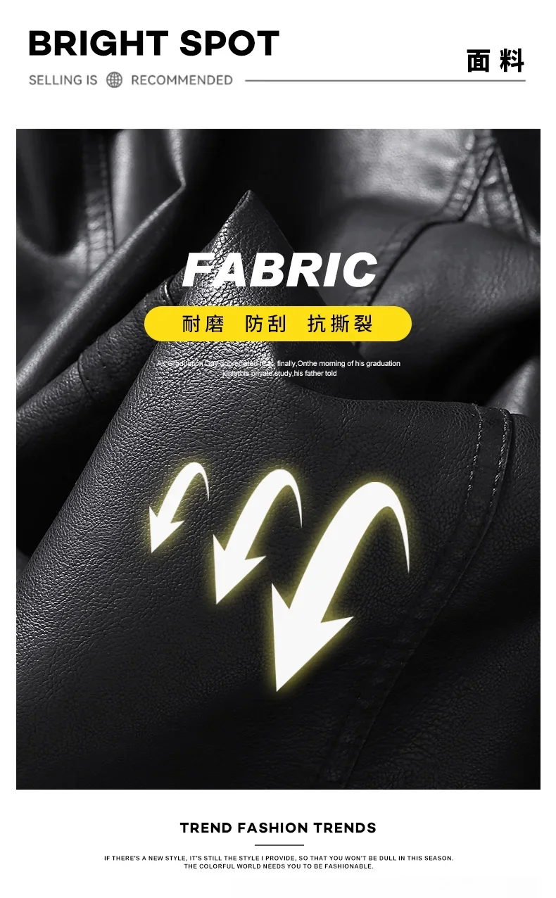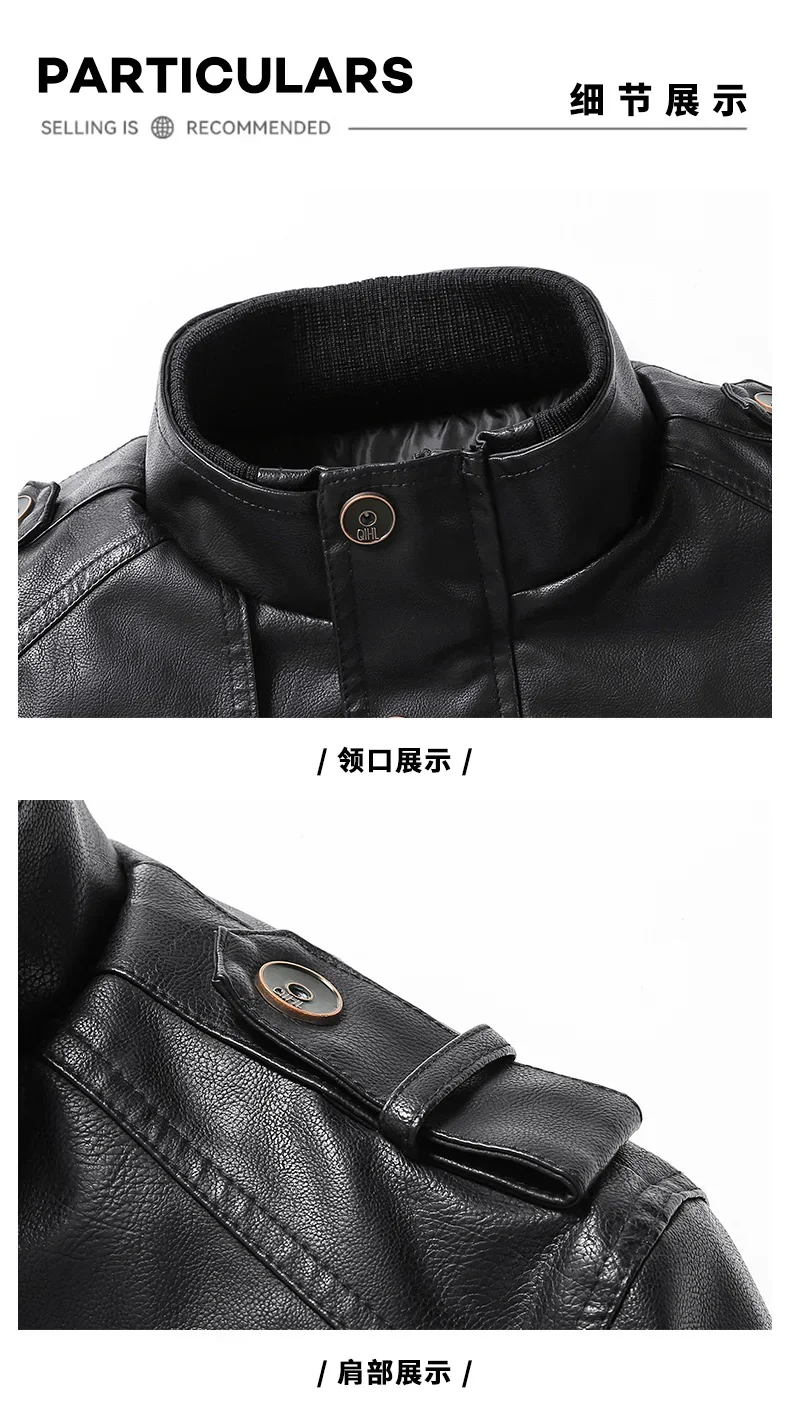 Men's Leather Jacket Autumn and Winter Windproof Standing Collar Motorcycle Tactical Warm Coat Casual Fashion Waterproof Jacket