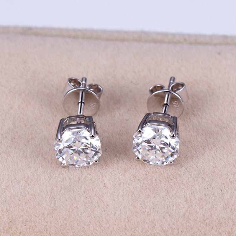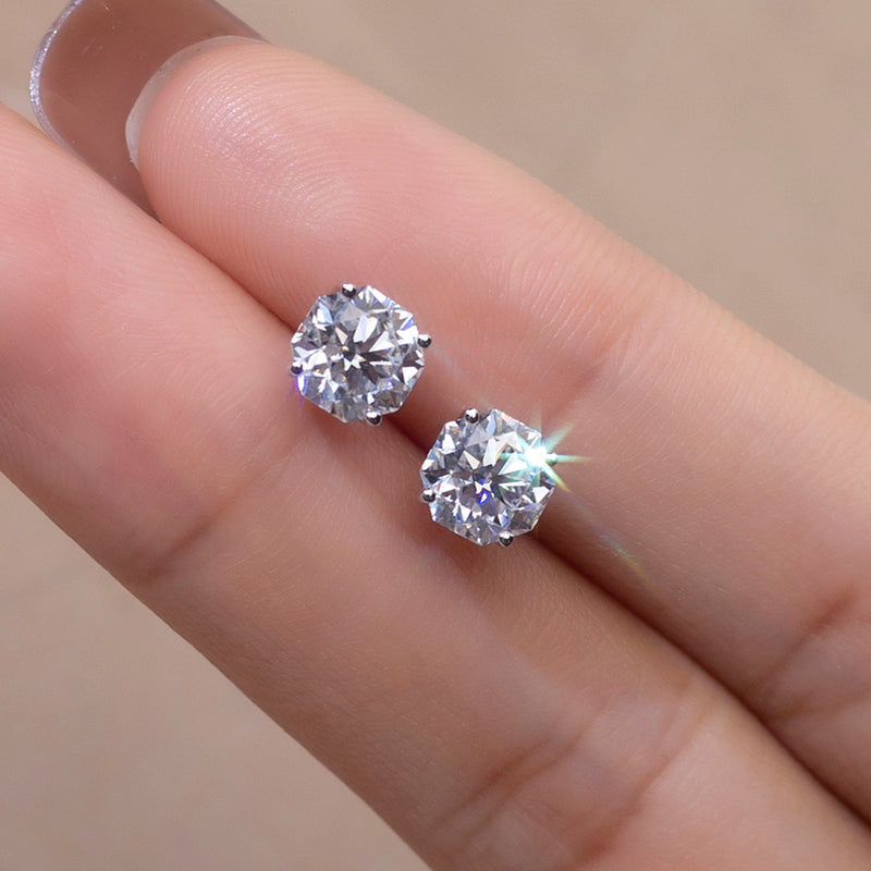 Messi Jewelry MSE-591 14K White Gold Octagon Moissanite Stud Earrings for Women