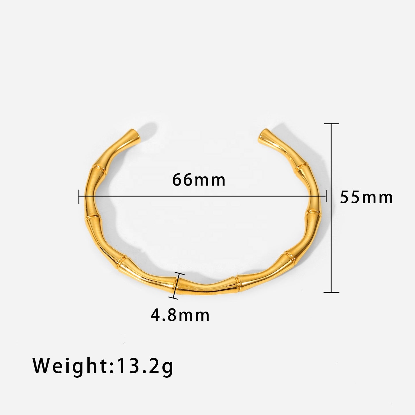 New Fashion Minimalist INS 18K Gold Plated Stainless Steel Jewelry Waterproof Simple Bamboo Opening Bracelet For Women Bangles