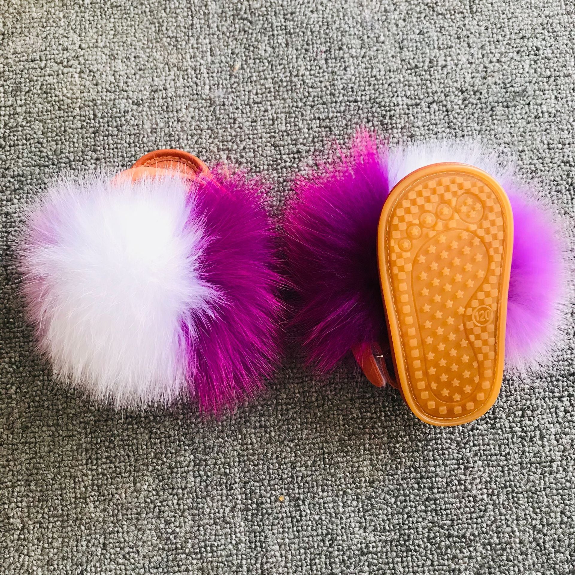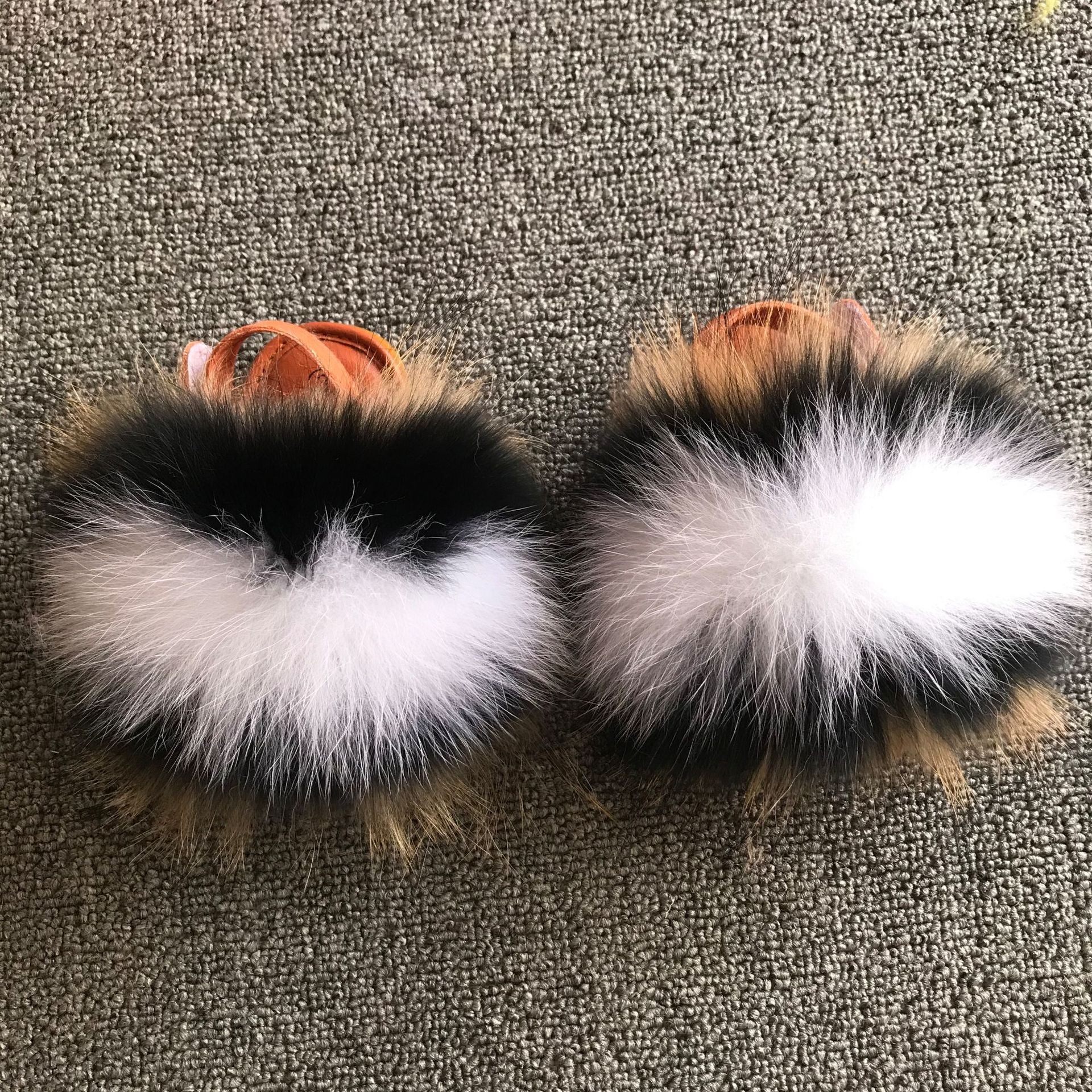 Women real fur pom slippers Fluffy slides for ladies fashion shoes sandals