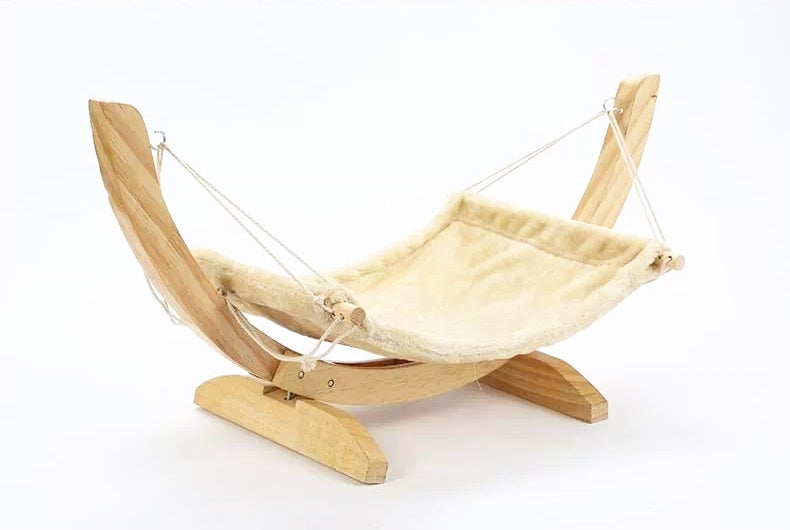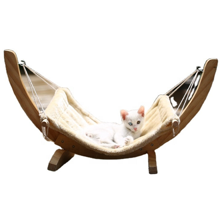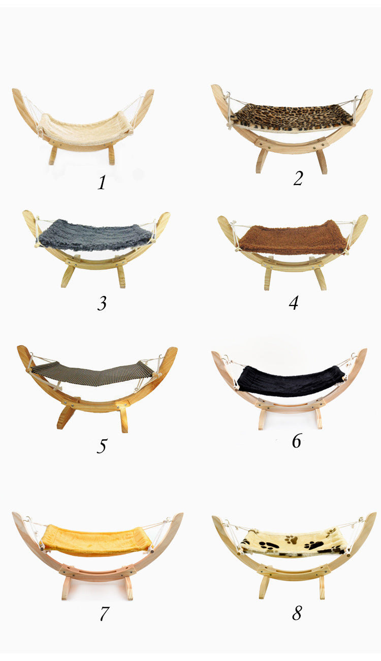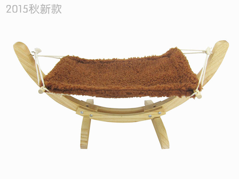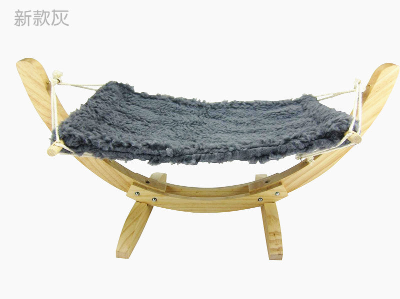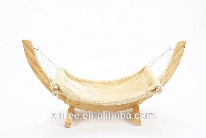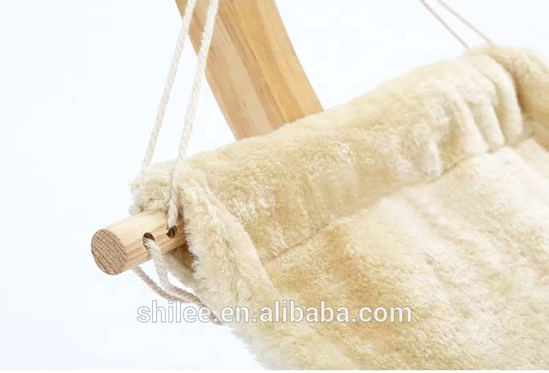 OEM Easy assembled Wooden Hammock Cat bed with plush pet hanging mat toys