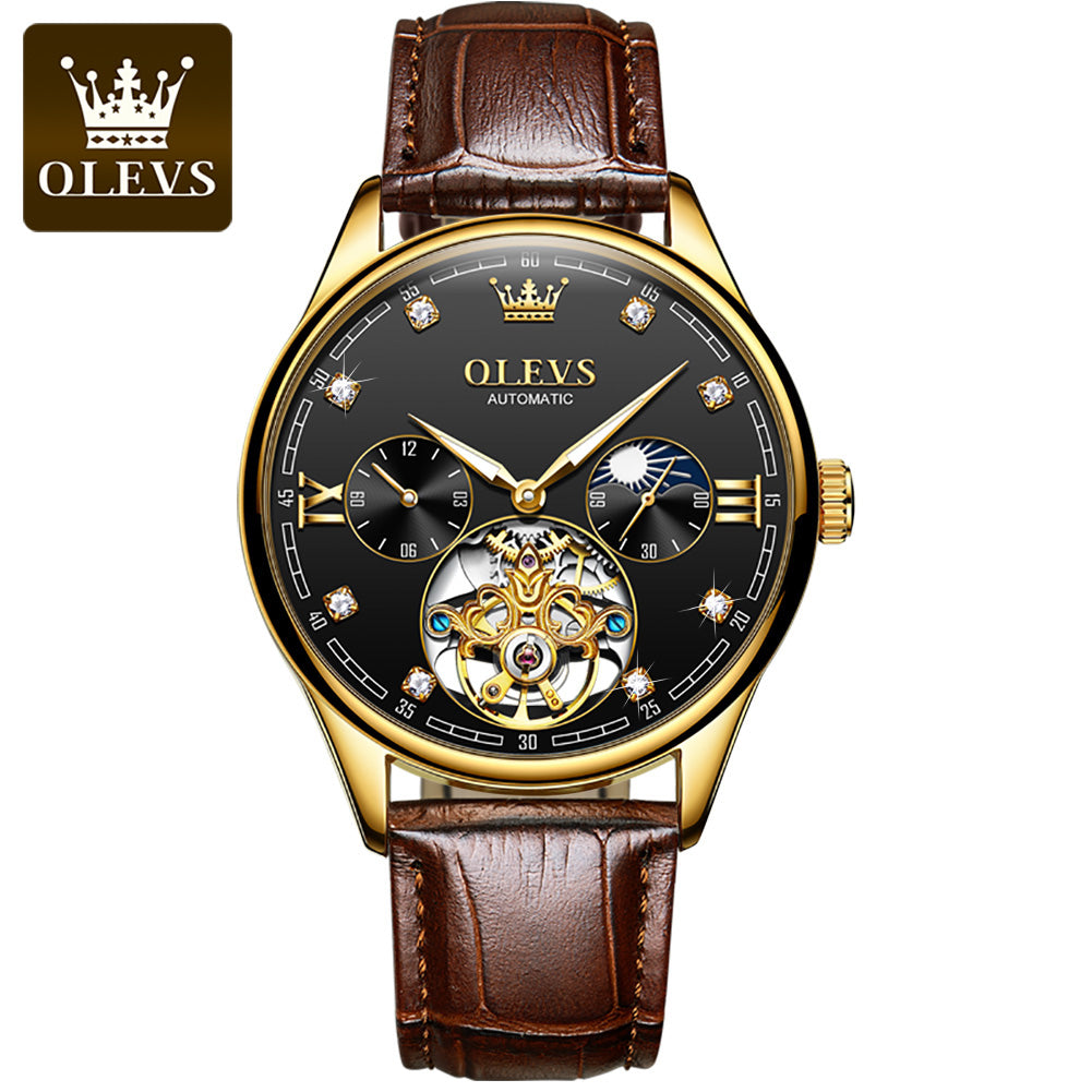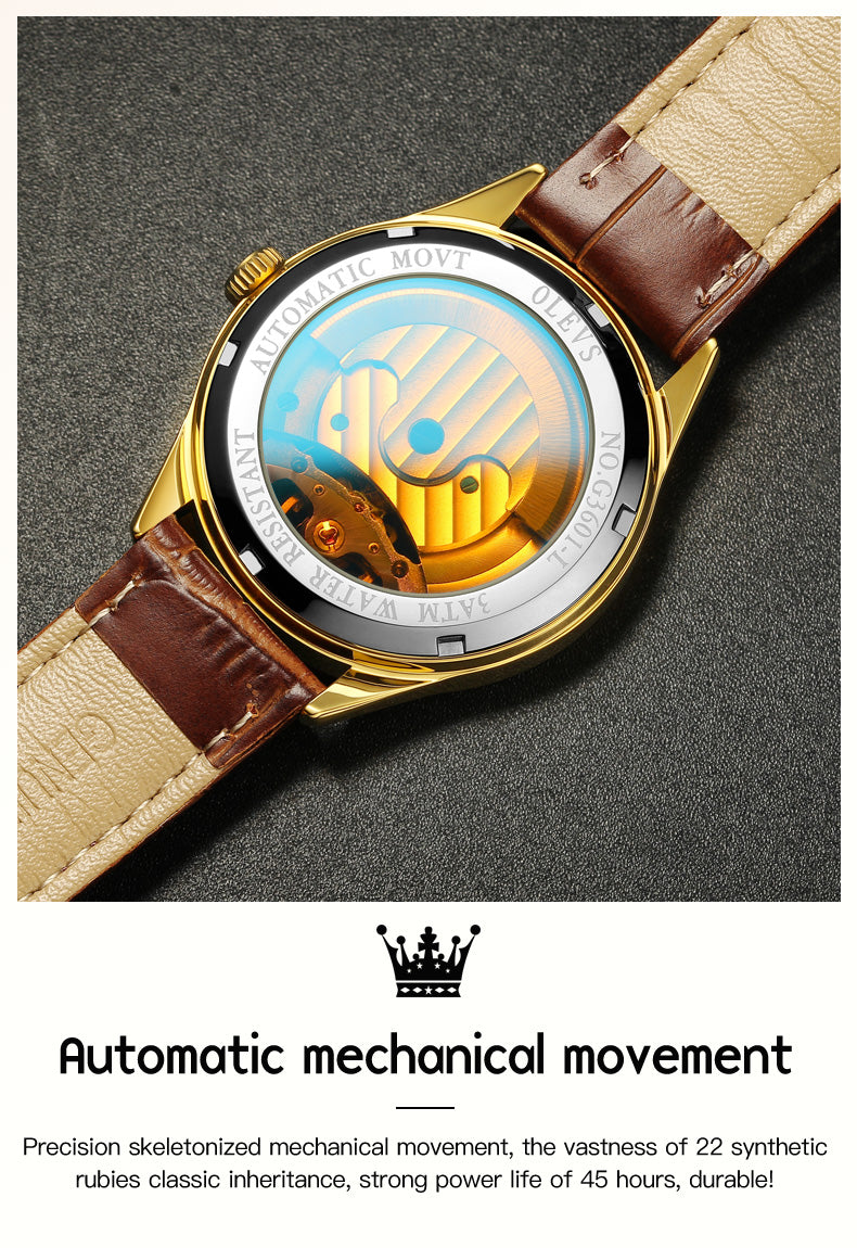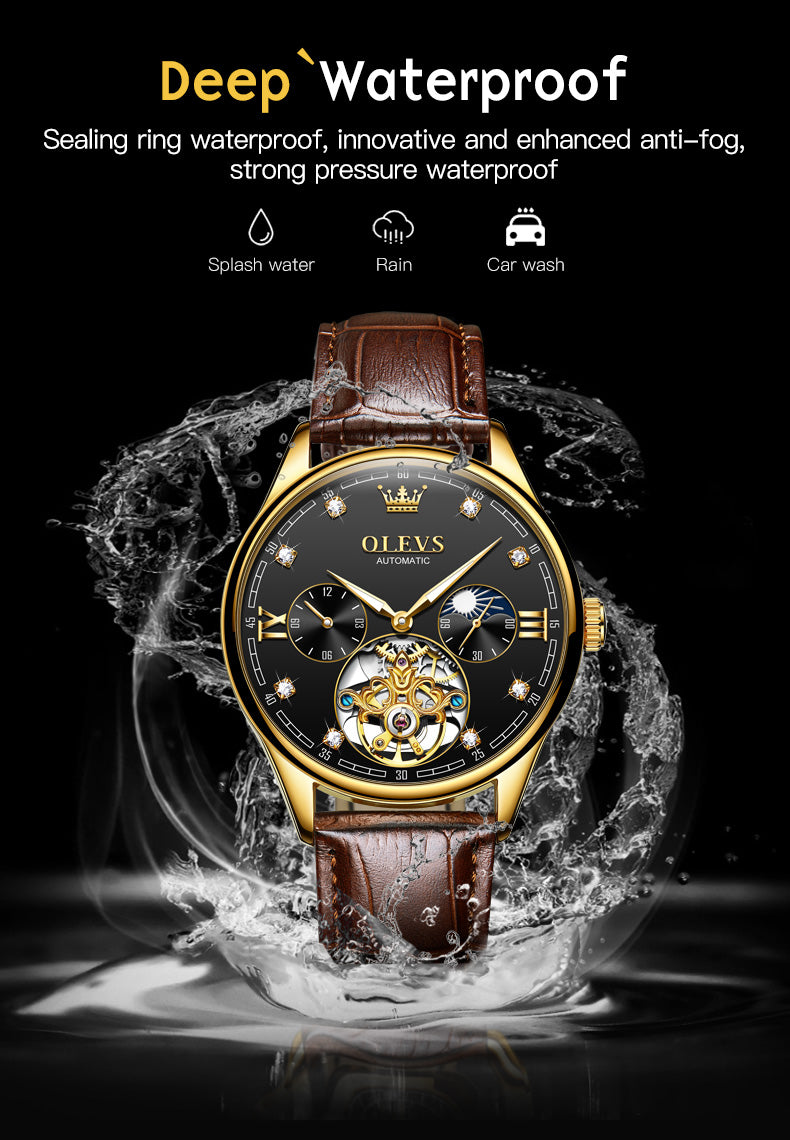 Luxury business Moon Phase Calendar Leather Luminous Waterproof Men's Automatic Mechanical Watch