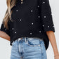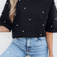 Pearl Beaded Round Neck Half Sleeve T Shirt