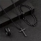 Punk Cross Pendant Necklace Bracelet Chain Ring Men's Set Simple Personality Hip Hop Party Three Piece Jewelry Accessories