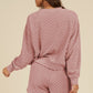 Round Neck Long Sleeve Checkered Top and Shorts Set