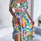 Ruffled Hem Smocked Floral Short Sleeve Midi Dress