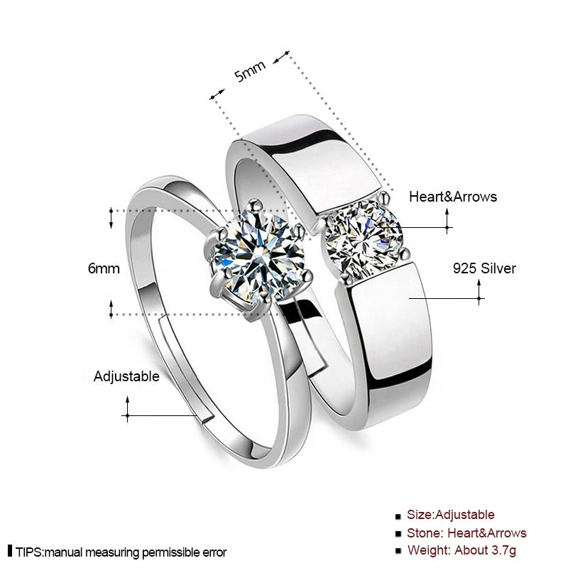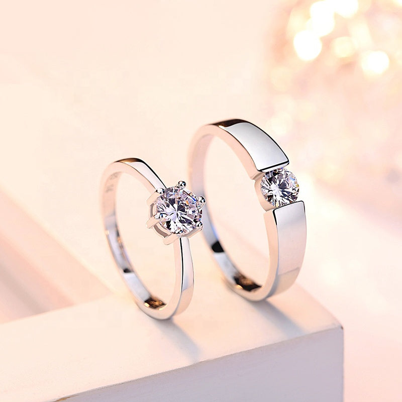 5211 Lovers Adjustable Crystal Rings Set S925 pure silver Love Wedding Couple Open Ring Party Engagement Charm Jewelry Women Men Hot
