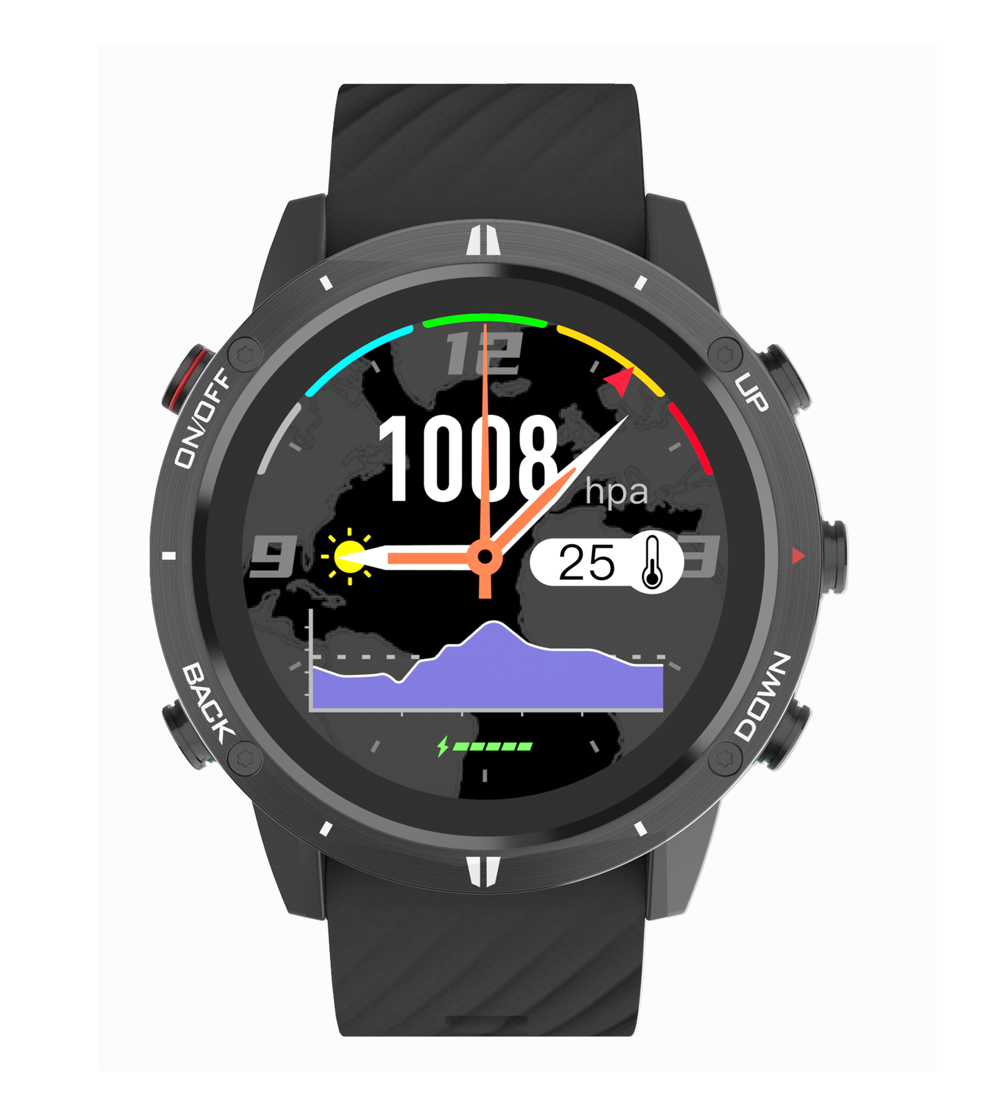 GPS pace, multi-sport mode, sports record, sports track, track navigation, mountaineering, diving, fishing, compass, custom dial,