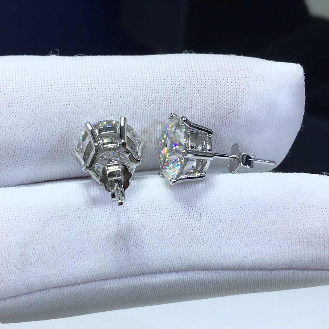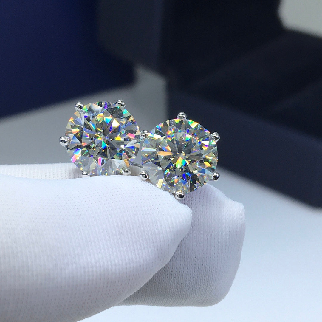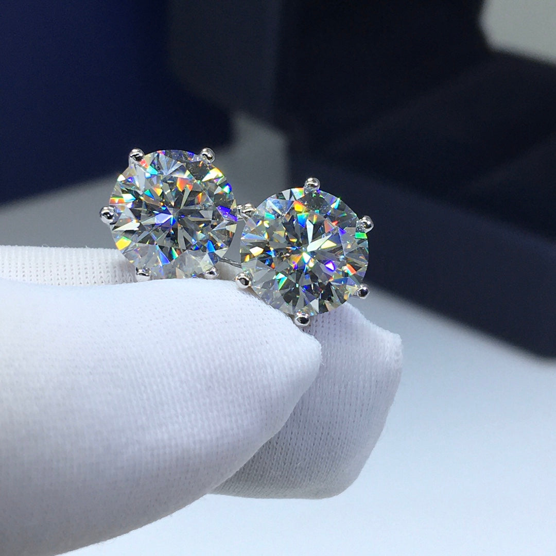 Silver 925 Original Diamond Test Past Total 6 Carat Round Brilliant Cut D Color Moissanite Stud Earrings for Women