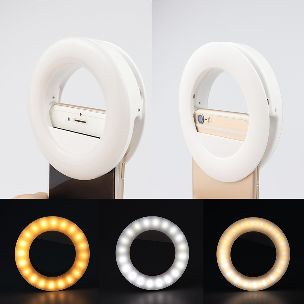 1, 40 High-brightness LED - It provides natural fill light when taking a selfie in the absence of light.   2, 3 Lighting Modes - Press the dimmer button to change the light color( Cold Light , Natural Light , Warm Light).   3, Adjustable Brightness - Long press the button to adjust the brightness from 1% to 100%, to meet the needs of different situations.   4, With memory function - Remember the last brightness you used .USB Rechargeable - Built-in rechargeable lithium battery (200mAh)without requiring any extra disposable batteries.   5, Lasts over 1.2-3 hours in full power   6, Compact Size and Lightweight