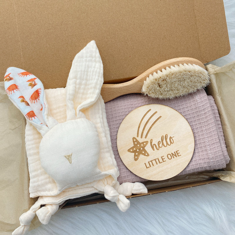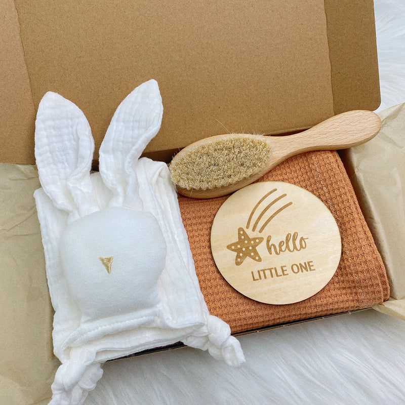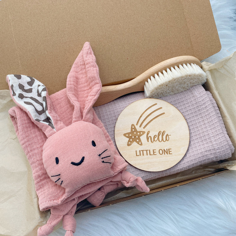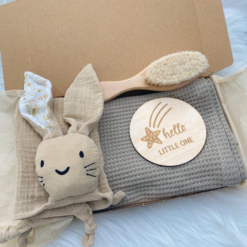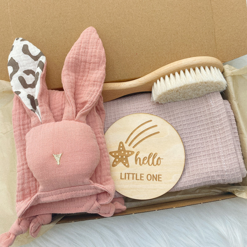❤ It contains bunny security blanket, baby bib, wooden card, pacifier clip and silicone teether, which can bring a happy time for your baby.
