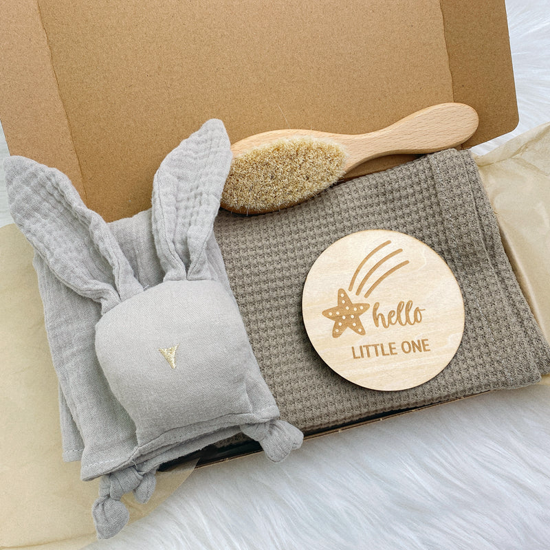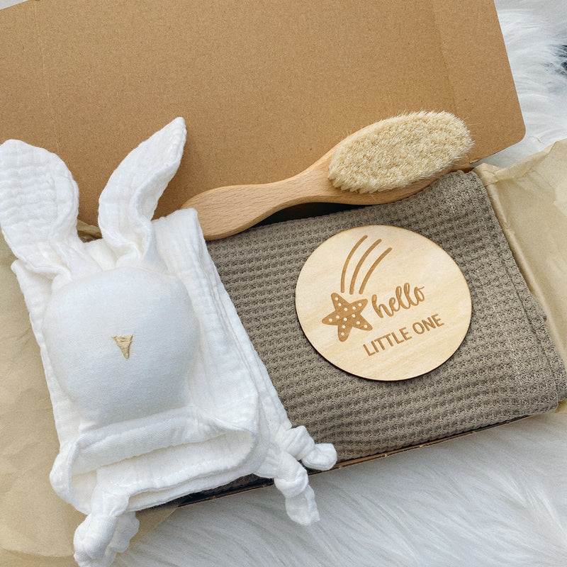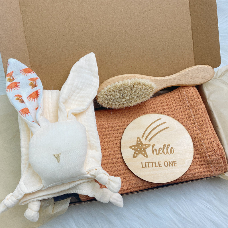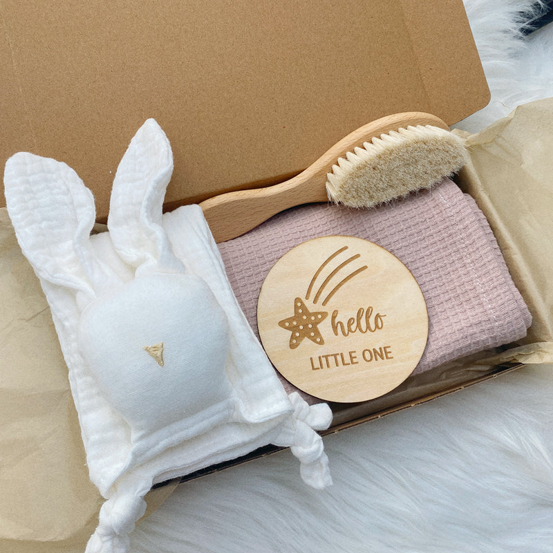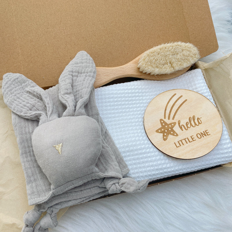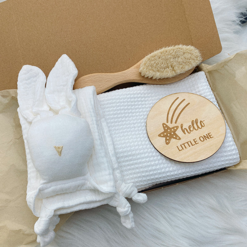 ❤ It contains bunny security blanket, baby bib, wooden card, pacifier clip and silicone teether, which can bring a happy time for your baby.
