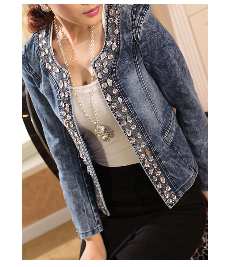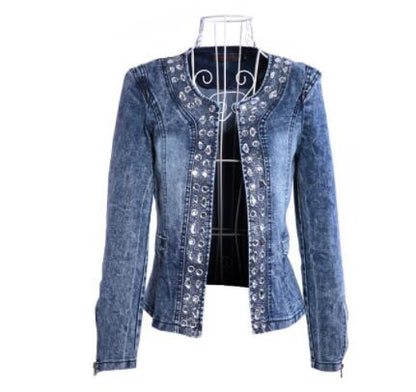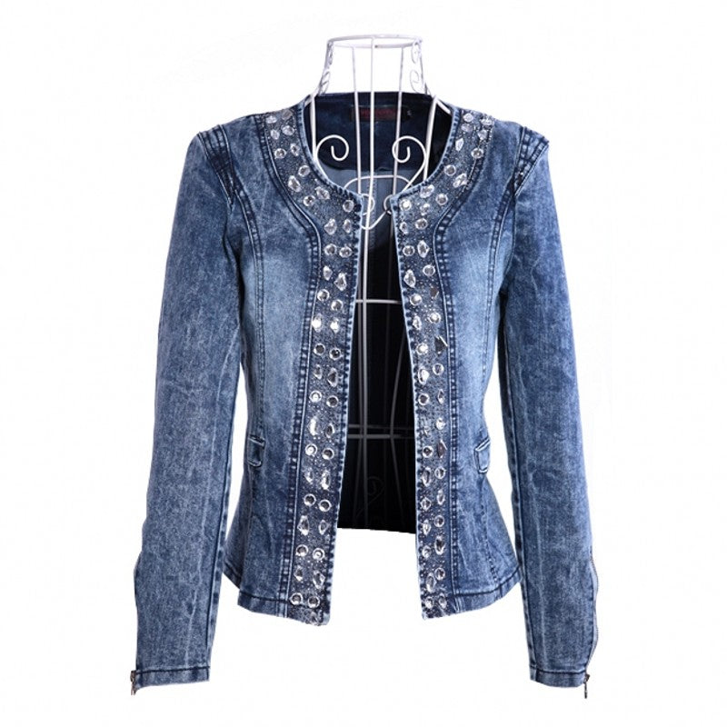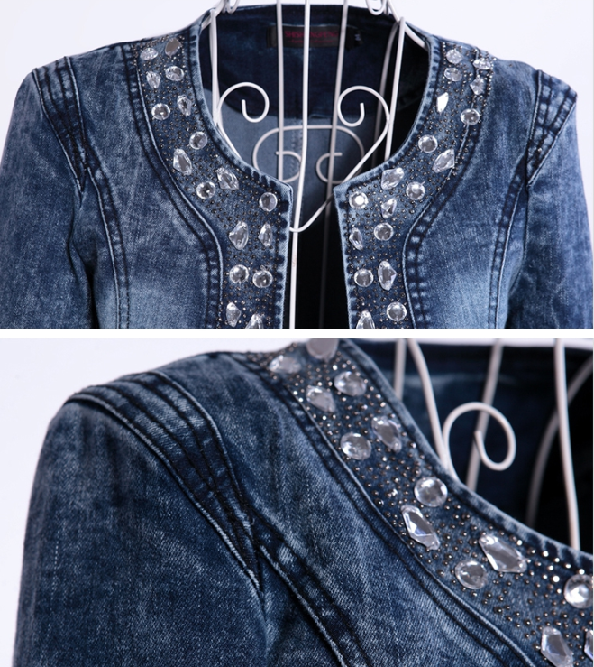 spring Autumn denim jackets vintage diamonds casual coat women's jeans jacket for outerwear female 4xl Y11345