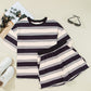 Stripe Half Sleeve T-Shirt and High Waist Pocketed Shorts Set