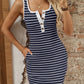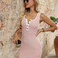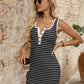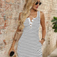 Striped Button Front Wide Strap Tank Dress