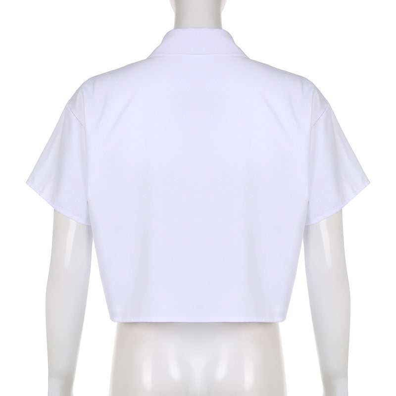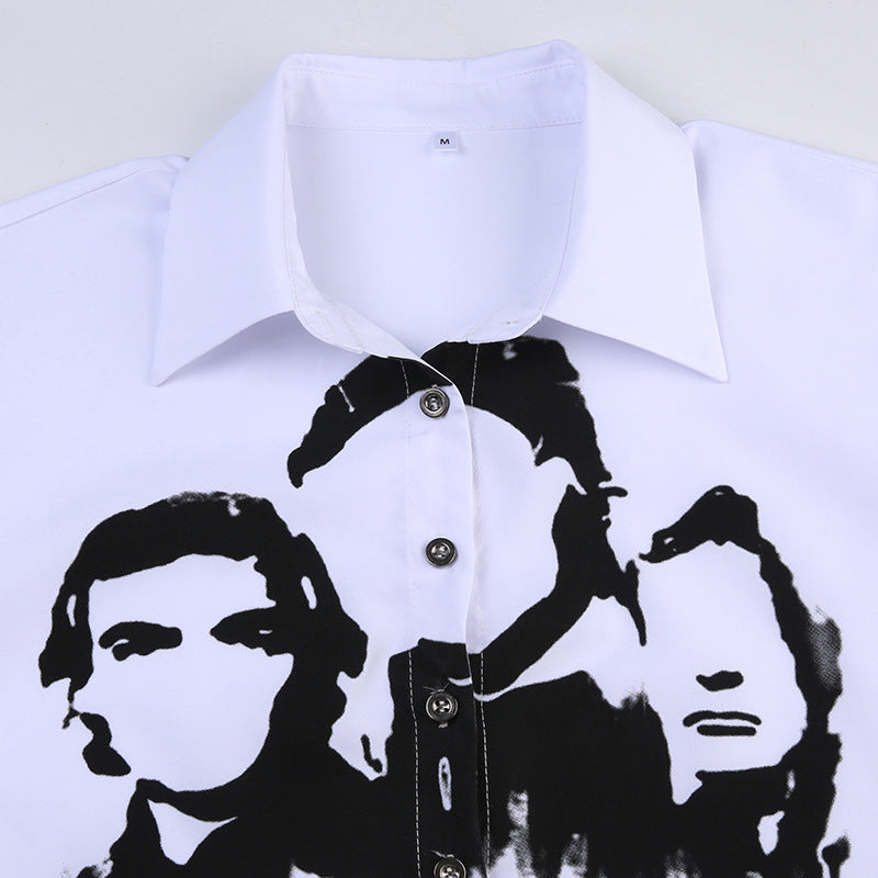 Summer New Streetwear Ins Woman Short Sleeve Face Print Loose Short Shirt Blouse Casual Cropped Tops Ladies Blouses