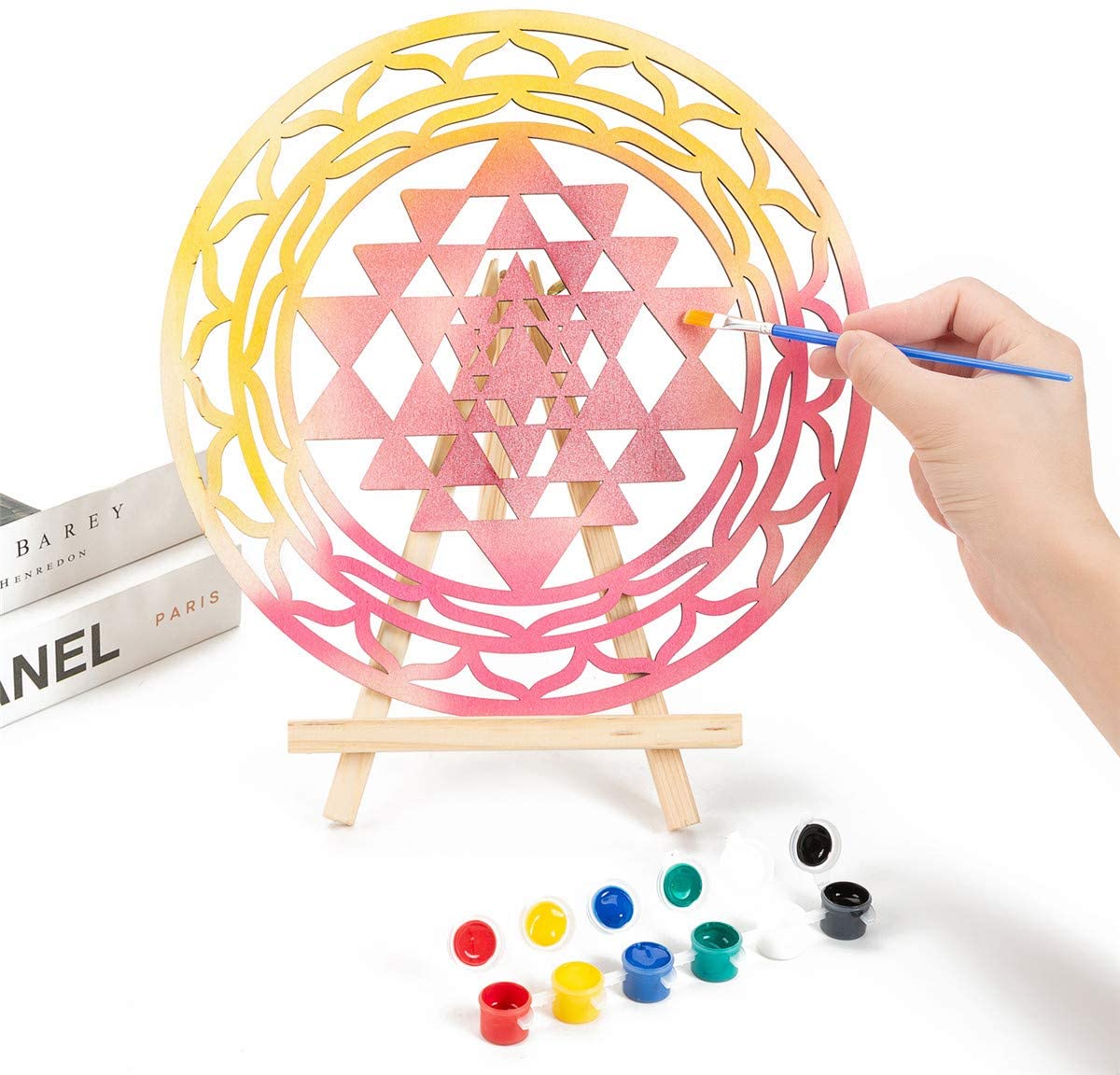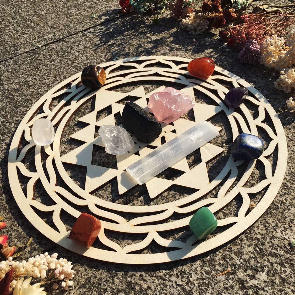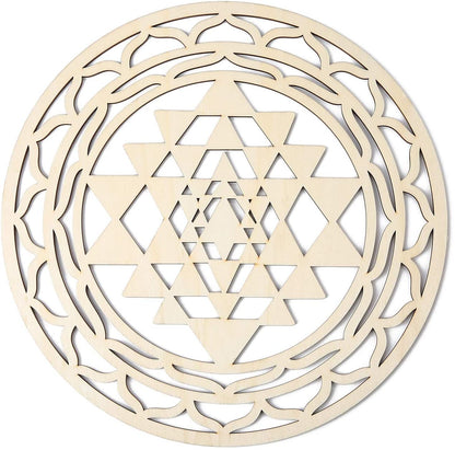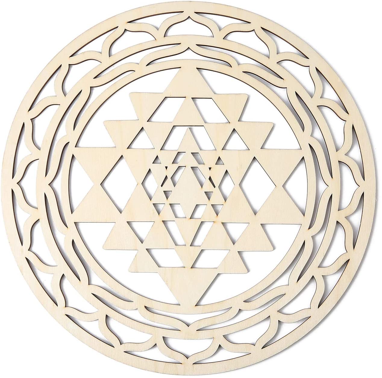 TaiLai Wood Sri Yantra Crystal Grid Sri Yantra Wall Art Hanging Wooden Sacred Geometry Wall Decor
