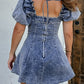Tie Back Square Neck Puff Sleeve Denim Dress