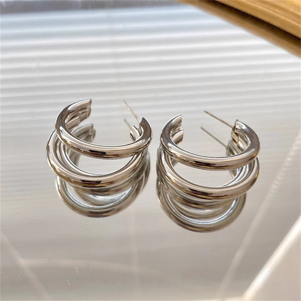 UILZ Gold Silver Color Hoop Earrings For Women Korean Fashion Three-layer Hoops Big Thick Round Earrings Piercing Jewelry Gifts