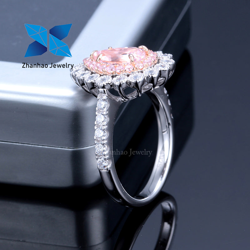 Zhanhao jewelry man made synthetic CZ gems main stone pear pink young ladies women pearl black onyx 925 sterling silver ring